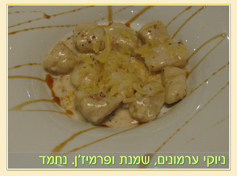 למנות ראשונות אכלנו פטה (הילדים הזמינו! היה מדהים, כולל הטוסט שנלווה לפטה!), ניוקי טעים (טיפונת רך מדי, אך רוטב הערמונים היה מושלם), ארטישוק, וחציל עם טחינת פרג (שהיה מאכזב). ההורים הזמינו קלמרי, שרימפס (מנה מצויינת!) וסלט אנטריקוט – שהוא לדעתנו המנה הראשונה הטובה ביותר. גם אנחנו הזמנו ניוקי, כמו הילדים, ואולי חבל שלא טעמנו את מנת הסלק. נצטרך לבוא שוב.