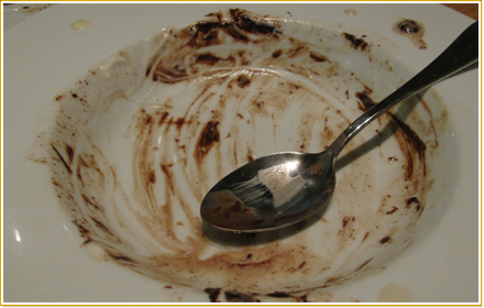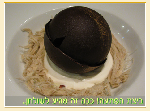 למנה אחרונה הזמנו שתי מנות שוקולד! ואנחנו אנשים שבדרך כלל מזמינים עוגת תפוחים.. ביצת הפתעה – שהיתה כל כך טעימה שהחזרנו צלחת נקייה: